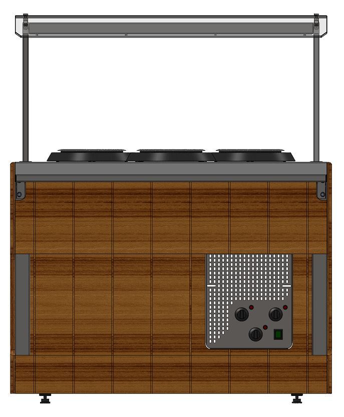 Прилавок нейтральный угловой относится к Шведским столам «Capital» торговой марки «Refettorio». Используется для удобства комплектации модулей под углом 45 градусов в линию прилавков, является промежуточным вспомогательным элементом. Исполнение - островное. Столешница из нержавеющей стали. Имеет светодиодную подсветку в нише фасадной части. В стандартный комплект поставки направляющая и фасады не входят (доп. опция).